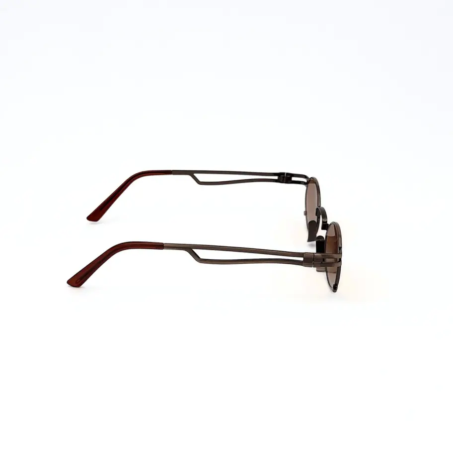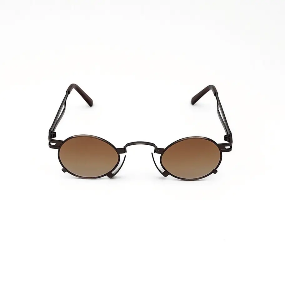 Brown oval lenses with UV400 filter that protects the eyes from 100% of UVA and UVB rays