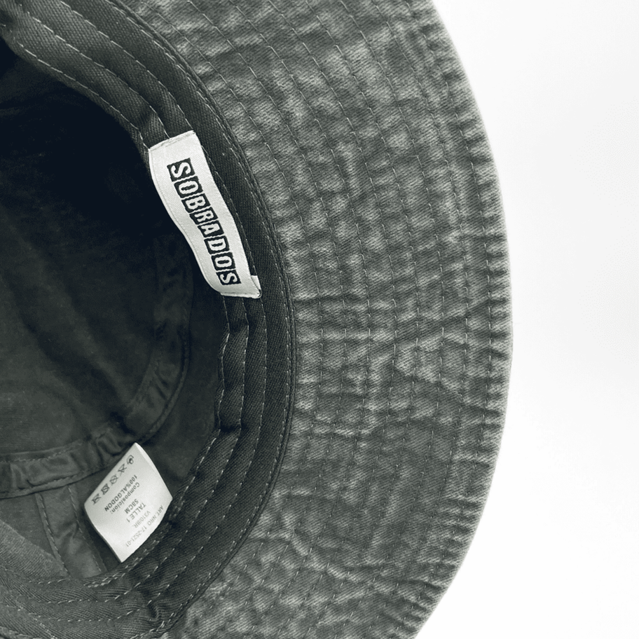 Unisex vintage-style green washed bucket hat with the embroidered phrase in white: Music is the Answer 🎶⚡️